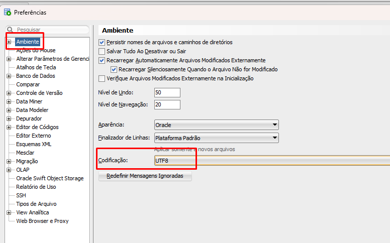 Configurando a codificação(charset) do Oracle SQL Developer (UTF-8)